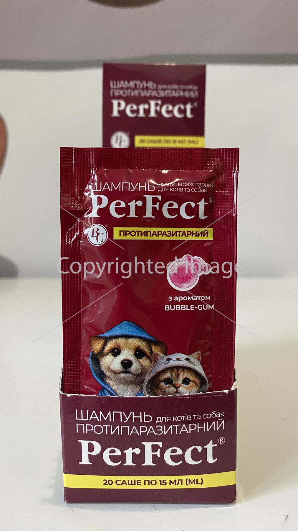 Шампунь PerFect протипаразитарний для котів і собак (Bubble Gum) 1 шт (саше 15 мл)