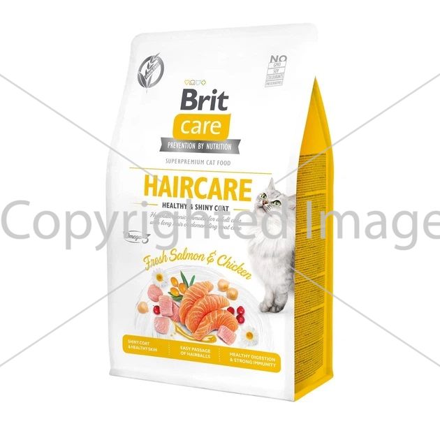Якщо ви хочете, щоб шерсть вашого котика була блискучою, густою та здоровою, а шкіра – чистою та без подразнень, тоді варто звернути увагу на Brit Care Cat Haircare Healthy & Shiny Coat. Це суперпреміальний сухий корм з лососем і куркою, спеціально створений для кішок, які потребують особливого догляду за шерстю та шкірою.