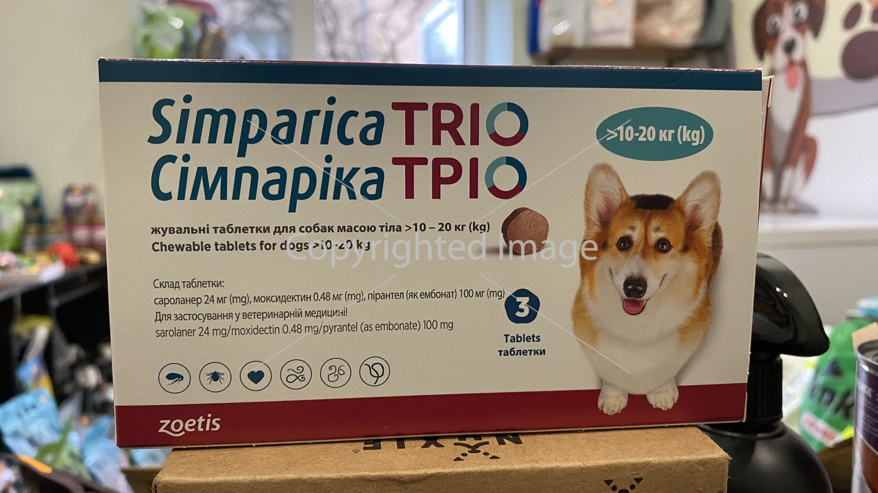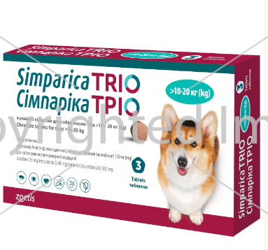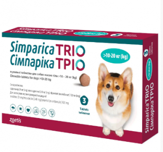 Simparica TRIO (Сімпаріка ТРІО) таблетки від бліх, кліщів та глистів для собак вагою від 10 до 20 кг